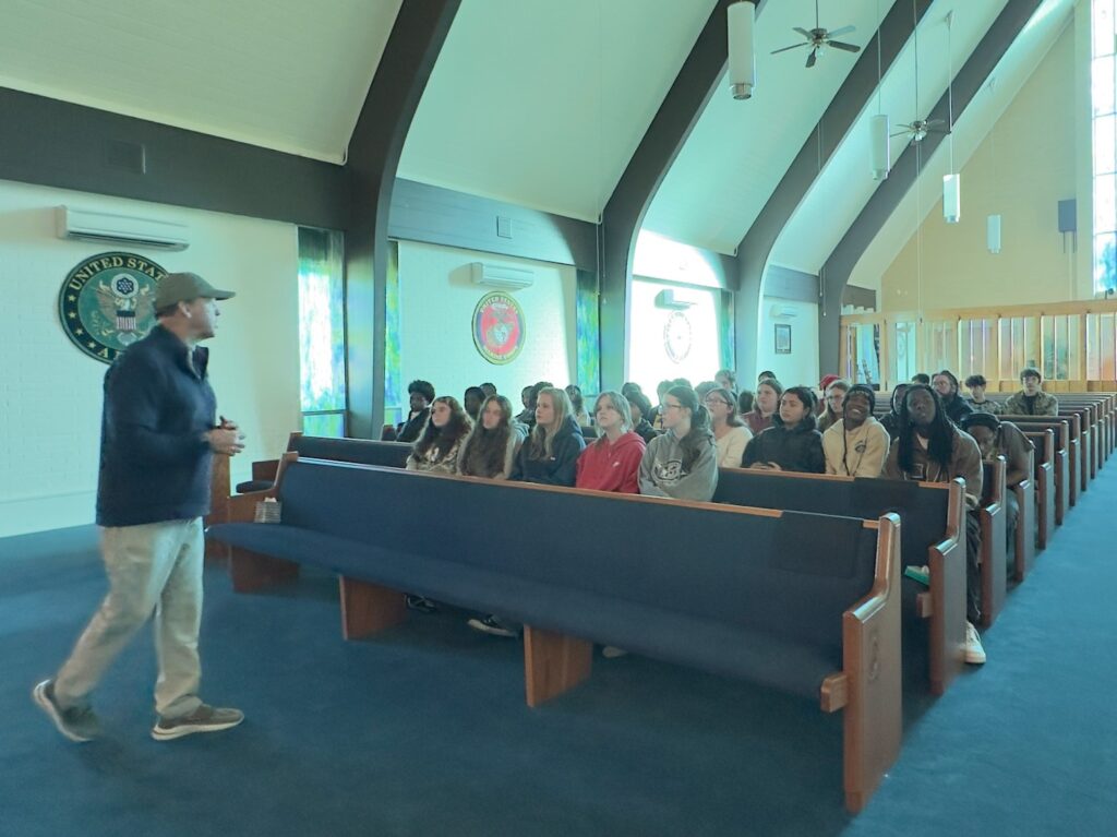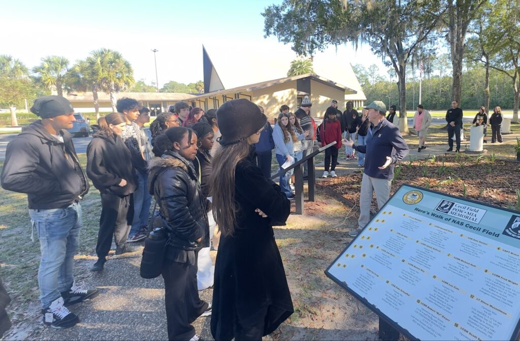 We had the pleasure of hosting members of The Foundation Academy for a tour of the Memorial.  On October 30th, about 40 students and faculty were provided an overview of the National POW-MIA Memorial and Museum and were given a tour of the project.  The student group was made up of 11th and 12th grade students who found the tour enlightening.  The Memorial has been the site of many reunions, Sea Cadet, Scouting, and other events, but this was the first of what may be many school field trips.  The Foundation Academy plans to make this an annual event for their school.
